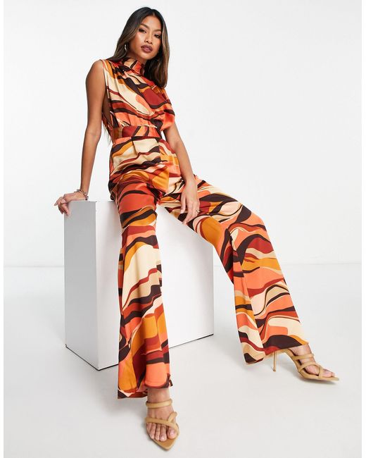 Lola May Satin Open Back Wide Leg Jumpsuit In Red Lyst Uk